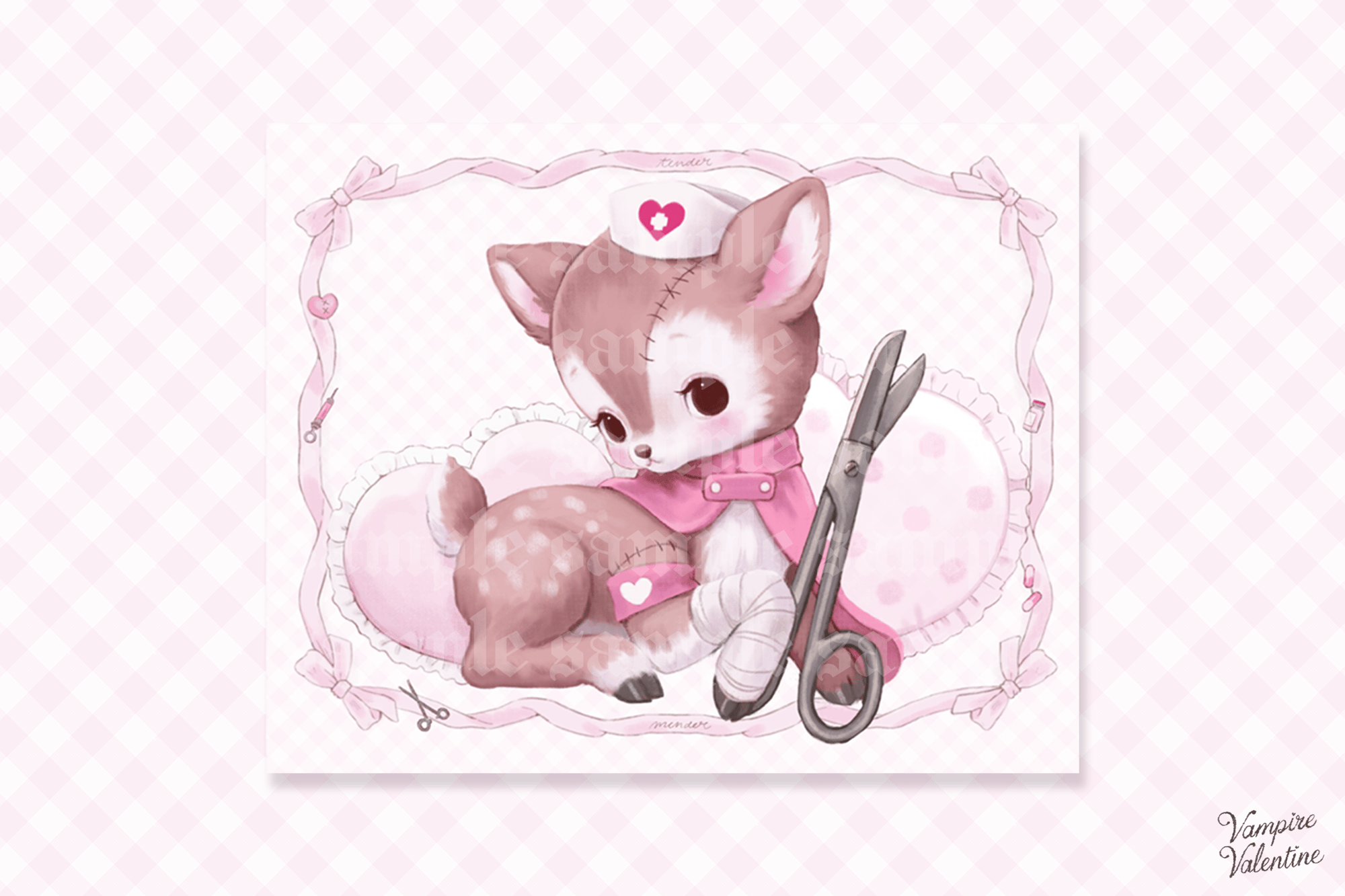 Sickly Sweet Tender Mender Fawn Print | Cute Vintage Kitsch Gloss Poster 8x10